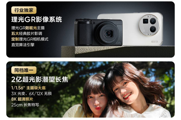 至于说最核心的拍照,由于引入了理光GR影像系统,手机的拍照画质得到了很大改变。主摄具备了更强的防眩光能力,夜晚或者逆光场景拍摄会更好。手机还有定制的胶片影调以及理光GR相机模式,形成自己的拍照风格。