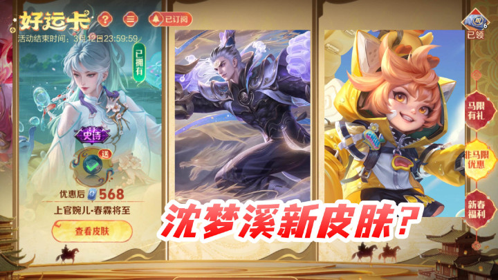 一个是沈梦溪,这个英雄确定有一款高级皮肤,具体是史诗还是传说目前还不确定,会在近期上线。