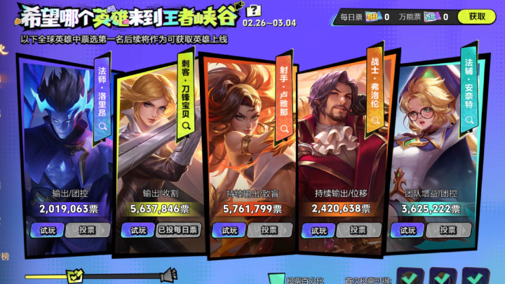 目前这两个英雄的票数差距也不大,所以如果想要刀锋宝贝或者卢雅那上线的话,一定要去投票哦。