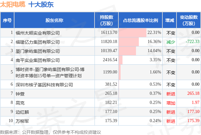 根据太阳电缆2025年三季报公布的十大股东详情如下: